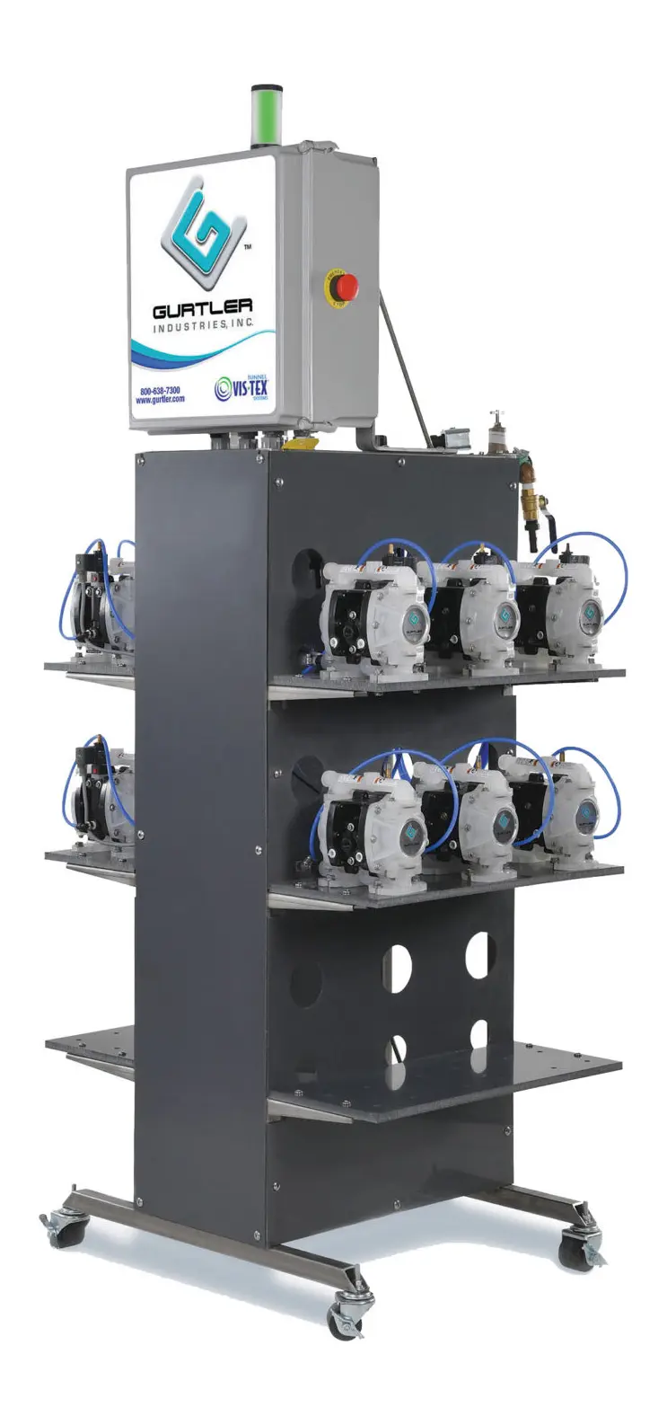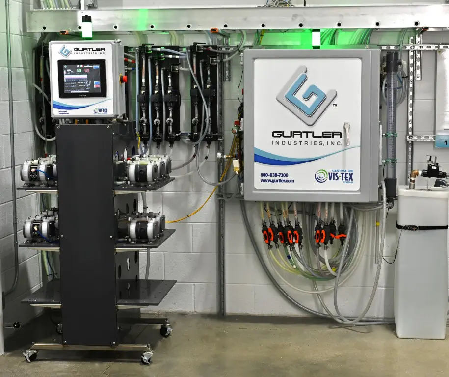 The Gurtler Vis•Tex Tunnel System features our uniquely designed space-saving Pump Module with more pumps to allow for the greatest flexibility for your chemical usage, meaning the best possible results with the lowest possible cost. Durable, new design diaphragm pumps require minimal service – can operate for 5 million strokes with no maintenance.