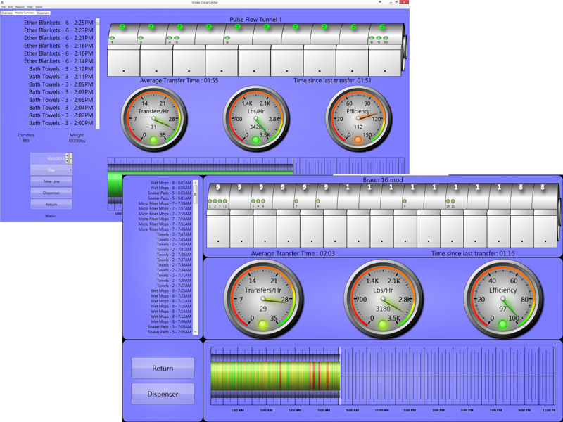 Tunnel Vis-Tex Data Center Logo The Data Center features a touch-screen programming monitor with full alarm and reporting capability. Fully customizable reports include production reports, chemical usage, and more. Our system is compatible with the Gurtler Vis·Tex Central System software, so a complete washroom productivity analysis can be obtained, and displayed on managements’ desktop computers, tablets and mobile devices.