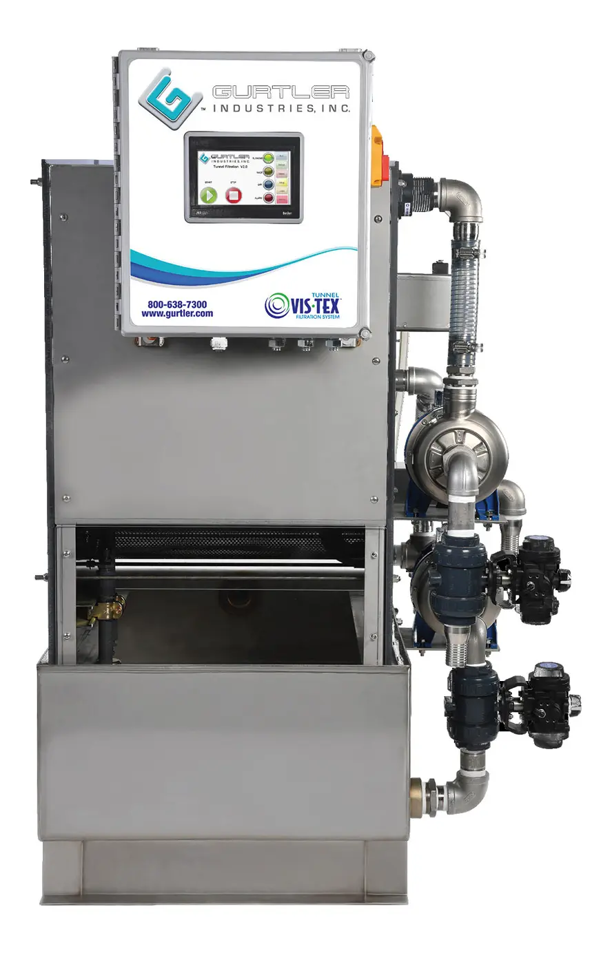 The exclusively engineered and designed: Vis•Tex Tunnel Filtration System. This low maintenance, automatic filtration system removes an incredible amount of material from your rinse-water stream, preventing it from depositing on your textiles. Gurtler’s technical experts and engineers help you determine the best placement of the system, making sure that it has the greatest effect on your quality. You supply the power source and the connection ports and Gurtler Installs and optimizes the system. Completely hassle-free installation!