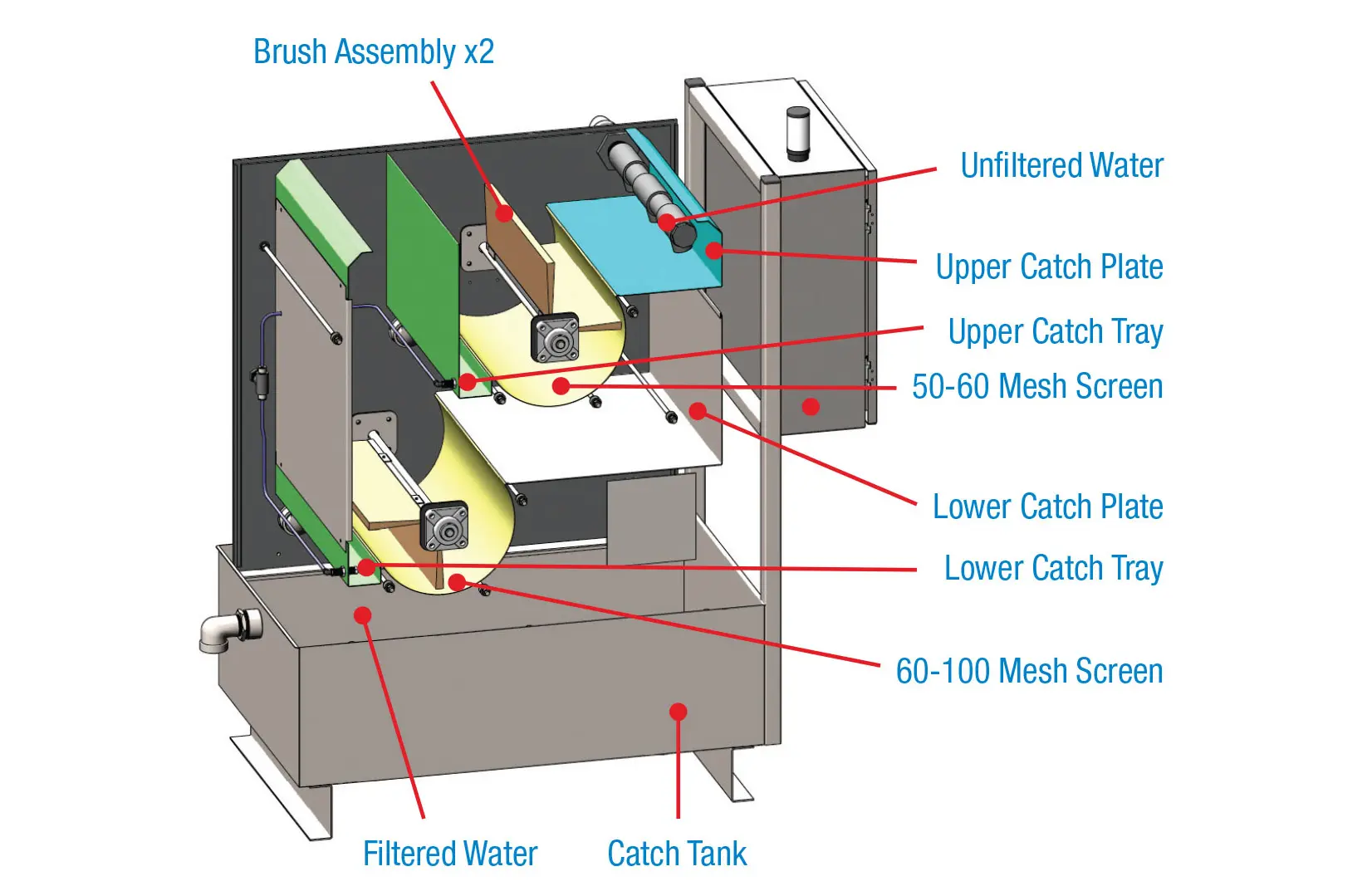 The Vis•Tex Tunnel Filtration System provides an easy to install, hyper-efficient system that quickly removes debris, lint and hair from your tunnel’s water stream.