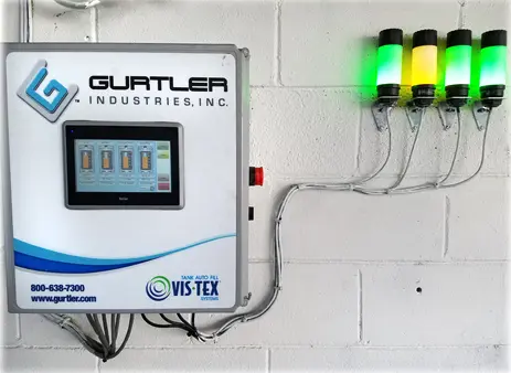 Gurtler’s newest addition to our Vis•Tex equipment family is our automated bulk chemical installation control and monitoring system. The Vis•Tex Auto Tank Refill System is exclusively developed by our engineering team to meet the stringent safety requirements for bulk chemical handling systems.Â